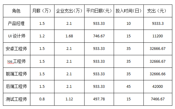当然,若是原生开发,那就不需要前端工程师,需要的总价大概为13.5万
